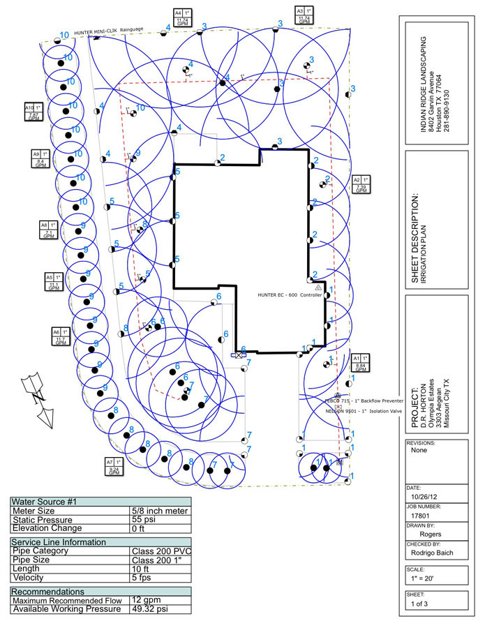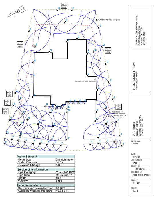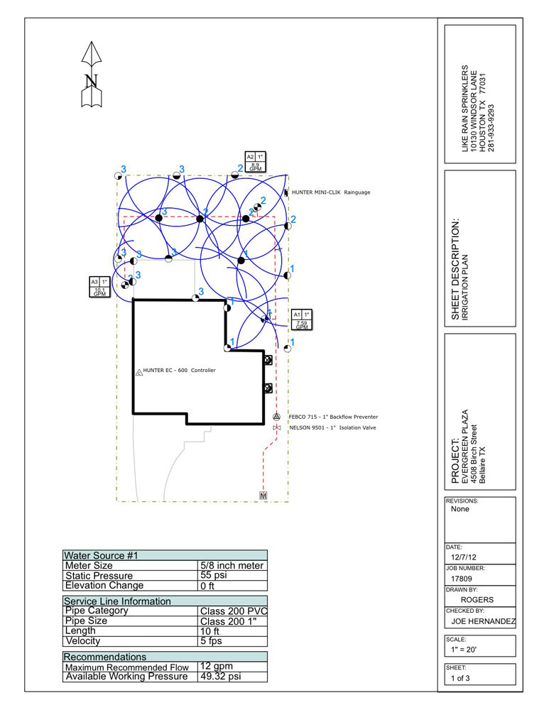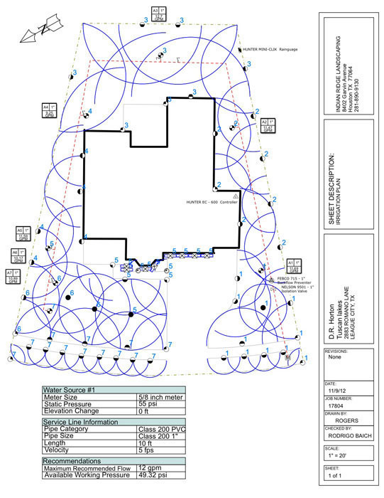 Rogers Irrigation Drawing Services: High quality irrigation drawings for Irrigation and Sprinkler System installation companies in Houston at reasonable prices.